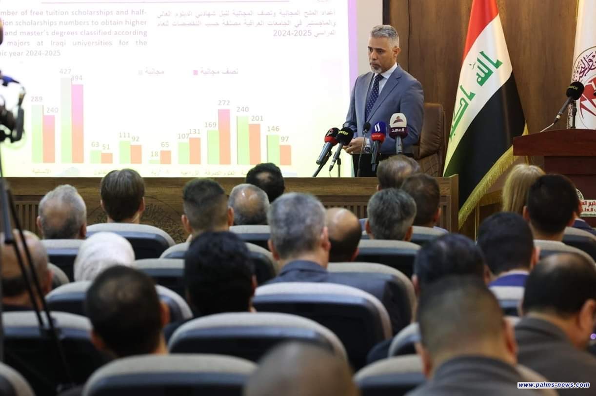 وذكر بيان للوزارة تلقت وكالة " نخيل نيوز" نسخة منه” أن " برنامج أدرس في العراق تضمن (14322) مقعداً دراسياً مقدما من (59 )جامعة حكومية وأهلية عراقية توزعت على (57%) للمنح المجانية و(43% ) للمنح نصف المجانية في التخصصات الطبية والصحية والهندسية والعلوم الصرفة والزراعية والبيطرية والإدارية والقانون والسياسة والتربوية والإنسانية لمراحل البكالوريوس والدبلوم العالي والماجستير والدكتوراه للعام الدراسي 2024/2025”.
