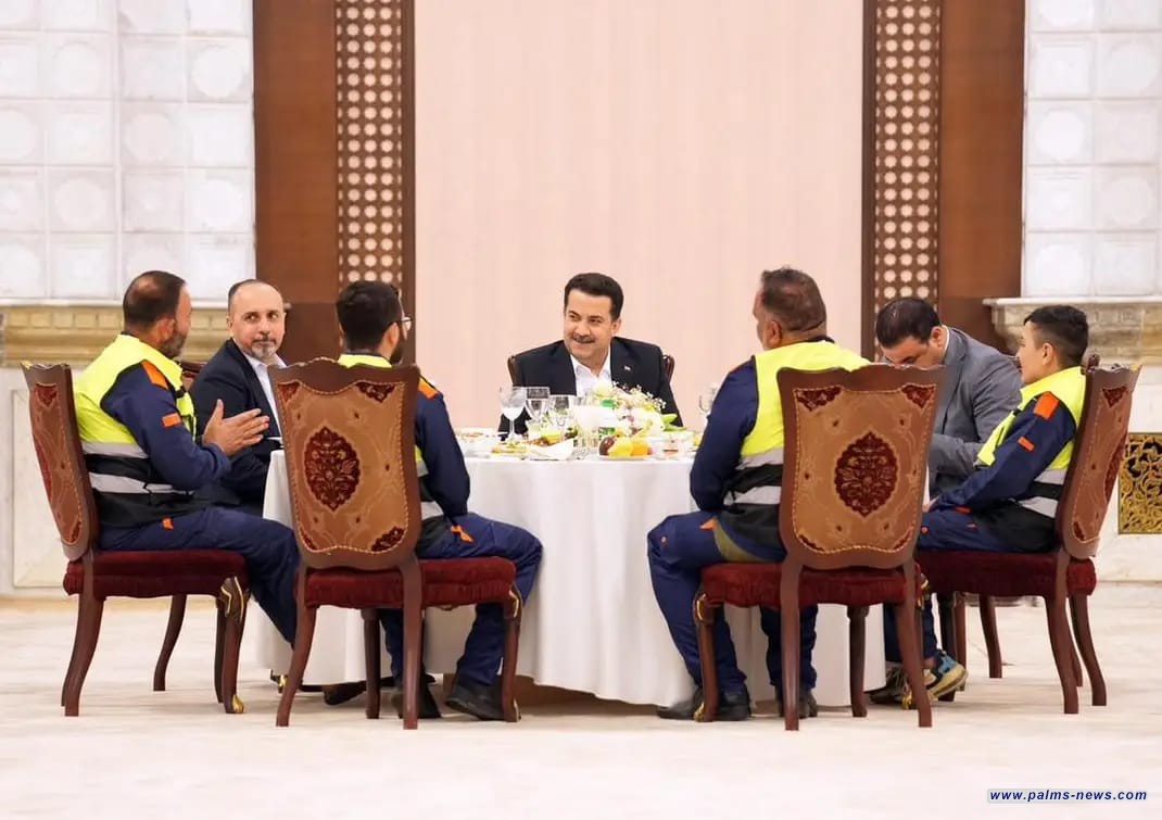 وقال مكتب رئيس الوزراء في بيان ، إن: "السوداني، استقبل عدداً من عمّال النظافة العاملين في مختلف بلديات مدينة بغداد، واستضافهم في القصر الحكومي على مائدة الإفطار لصيام شهر رمضان المبارك، بحضور أمين بغداد".