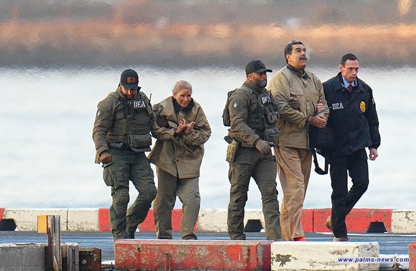 نشرت وسائل إعلامية، اليوم الاثنين، صورة للرئيس الفنزويلي نيكولاس مادورو وزوجته مكبلين بالاصفاد.